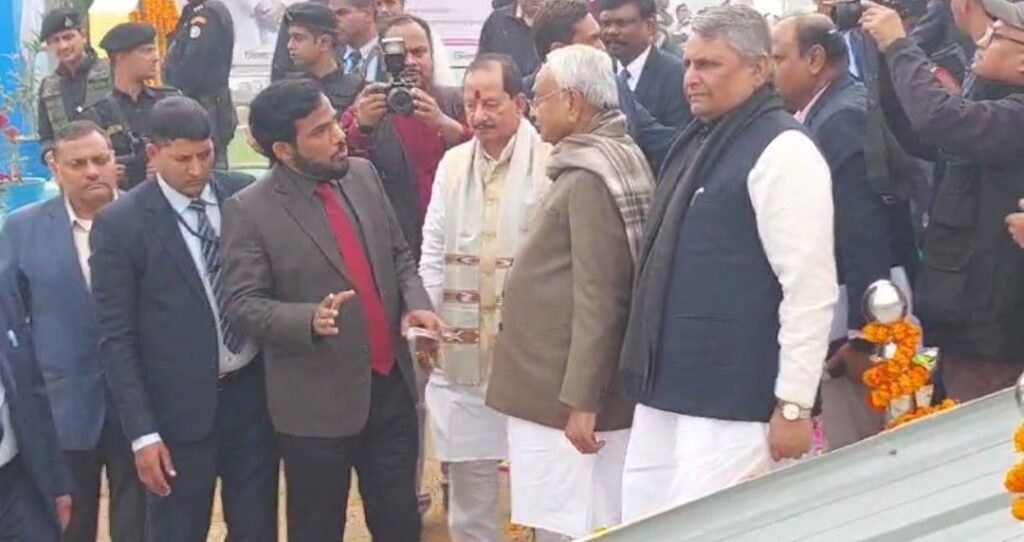 वैशाली। प्रगति यात्रा के दौरान आज बिहार के मुख्यमंत्री नीतीश कुमार वैशाली जिले के बेलसर प्रखंड के नगमा गांव पहुंचे हैं। जहां मुख्यमंत्री द्वारा 3 करोड़ 18 लख रुपए के योजना शिलान्यास किया गया है। मुख्यमंत्री द्वारा वर्चुअल माध्यम से 125 से अधिक योजनाओं का शिलान्यास किया मुख्यमंत्री द्वारा जनजीवन हरियाली मिशन के तहत जीविका दिदी मछली पालन को लेकर मुख्यमंत्री द्वारा पोखर भी दिया गया है। जीविका स्वपोषण योजना के तहत कई महिलाओं को बैटरी रिक्शा भी दिया गया है।