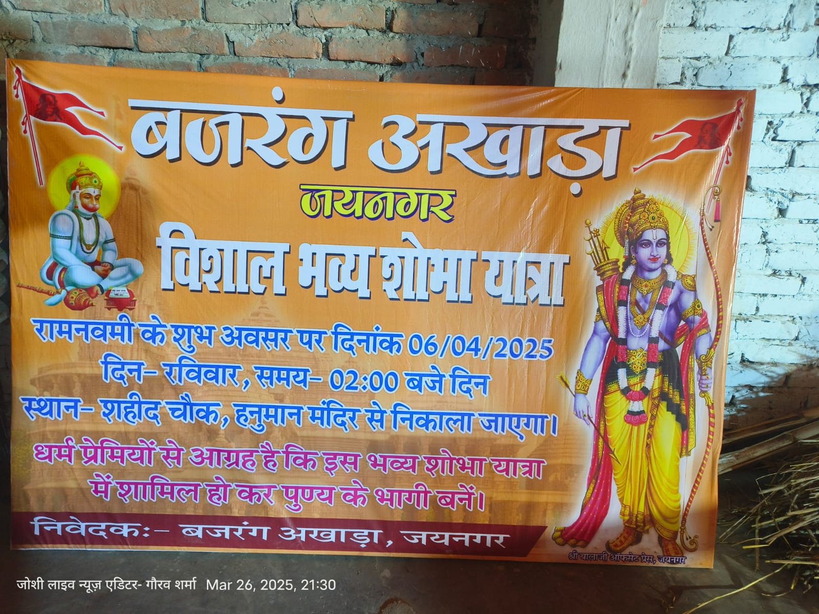 रामनवमी के अवसर पर मधुबनी जिले के इंडो नेपाल बॉर्डर पर स्थित जयनगर में शोभा यात्रा निकालने को लेकर बुधवार की रात स्थानीय शहीद चौक स्थित अनुसूचित जाति अनुसूचित जनजाति विकास मंच कार्यालय परिसर में एक बैठक का आयोजन किया गया। बैठक की अध्यक्षता अरविंद तिवारी एवं मंच संचालन रजिंत गुप्ता ने किया। बैठक में सर्व सम्मति से निर्णय लिया की रामनवमी के अवसर महाविशाल शोभा यात्रा बजरंग अखाड़ा जयनगर के द्वारा निकाला जायेगा हैं। बैठक को संबोधित करते हुए मुख्य पार्षद कैलाश पासवान ने कहा कि भारत नेपाल अंतरराष्ट्रीय सीमा पर अवस्थित जयनगर हमेशा से आपसी सौहार्द का मिशाल बना हुआ रहा है। इस वर्ष भी अन्य वर्ष की भांति रामनवमी के अवसर पर महाविशाल शोभा यात्रा के तहत प्रभु श्रीराम का भव्य झांकी निकाली जाएगी। उन्होंने उपस्थित लोगों से कहा कि शोभा यात्रा को ऐसा बनाएं की सभी धर्म के लोग कहें कि जयनगर तथा आसपास के लोगों ने एकता का परिचय दिया है। मुख्य पार्षद ने सभी जाति धर्म के लोगों से अनुरोध किया कि प्रभु श्री राम के शोभा यात्रा में भाग ले और शांतिपूर्ण ढंग से सौहार्द पूर्ण वातावरण के माहौल में शोभा यात्रा निकाले। इस शोभा यात्रा में सारे भेदभाव को भूल कर कंधे से कंधा मिलाकर चले यही हमारा विचार है। रामनवमी के अवसर पर विभिन्न तरह की झांकी निकाली जाएगी। जयनगर के लोग एक दूसरे के सुख-दुख में साथ देती है। यहां अनेकता में एकता हैं। सभी समुदाय के लोग एक दूसरे के त्योहार में शामिल होते हैं। वक्ताओ ने कहा कि झांकी से दो दिन पहले अपने अपने घरों में झंडा अवश्य लगावें। साथ ही सभी धर्म का सम्मान करते हुए प्रेम भाव से शोभायात्रा निकालने पर विचार विमर्श किया गया। इस मौके पर मुख्य पार्षद कैलाश पासवान,अरविंद तिवारी,गणेश पासवान, रंजीत पासवान, रामचंद्र मंडल, गंगा प्रसाद चौधरी गोपाल भगत ,उद्धव कुंवर ,रंजीत गुप्ता,धीरेंद्र झा,चंद्रवीर सिंह,संतोष साह,हरेकृष्ण मंडल,अमरजीत पूर्वे,अशोक राय,शम्भू कुमार गुप्ता,विजय कुमार महतो,हनुमान मोर सहित कई लोग मौजूद थें।