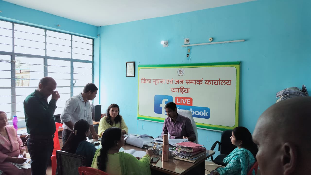 आज समाहरणालय, खगड़िया स्थित सूचना एवं जनसंपर्क कार्यालय में मीडिया कोषांग (MCMC) की एक महत्वपूर्ण बैठक आयोजित की गई। बैठक की अध्यक्षता उप विकास आयुक्त सह वरीय नोडल पदाधिकारी, MCMC श्री अभिषेक पलासिया (भा.प्र.से.) ने की।
