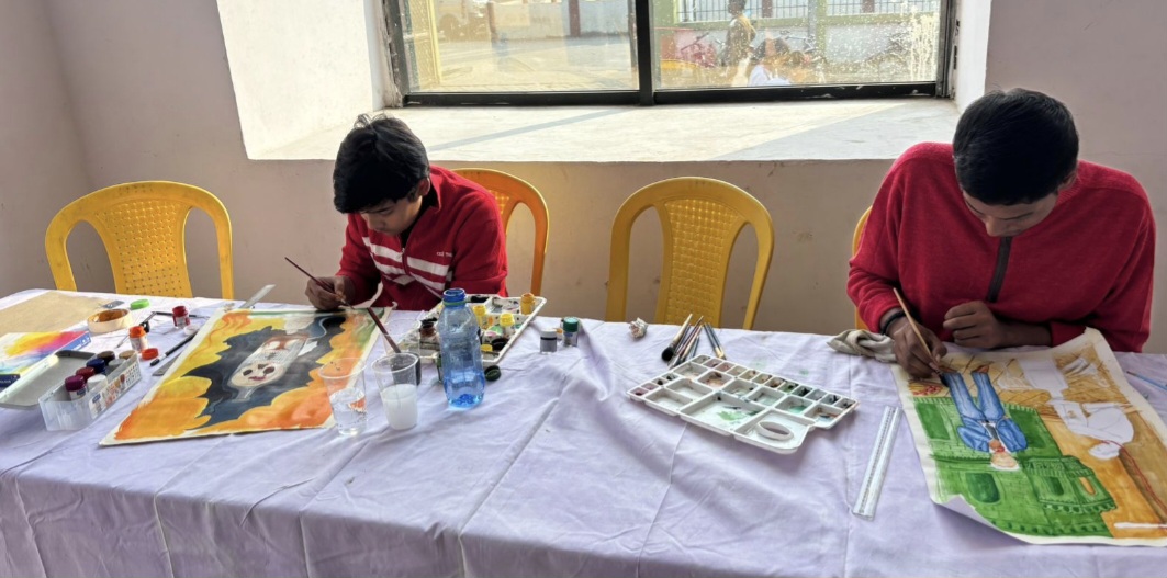 चित्रकला प्रतियोगिता में जिज्ञासा, आशिकी ,अमरदीप, अर्णव , अंजली, आराध्या ,मुस्कान और अंशु कुमार ने हिस्सा लिया।