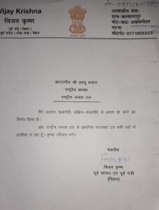 पत्र में बिहार सरकार के पूर्व मंत्री और पूर्व सांसद बिजय कृष्ण ने लिखा कि मैंने दलगत और सक्रिय राजनीति से अलग होने का निर्णय लिया है।