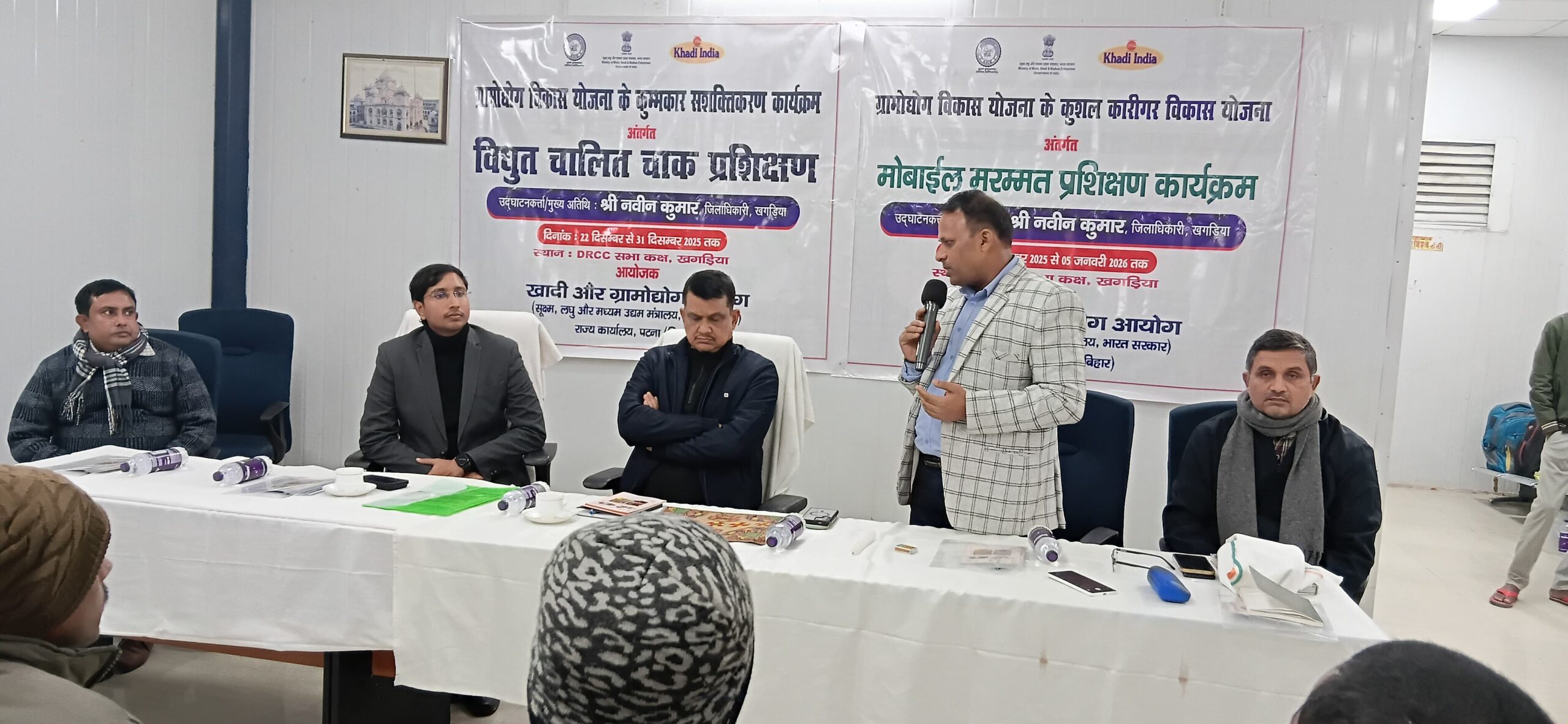 खादी और ग्रामोद्योग आयोग, राज्य कार्यालय पटना (सूक्ष्म, लघु एवं मध्यम उद्यम मंत्रालय, भारत सरकार) के तत्वावधान में जिला निबंधन परामर्श केंद्र (DRCC), खगड़िया में ग्रामोद्योग विकास योजना के अंतर्गत दो प्रशिक्षण कार्यक्रमों का संयुक्त उद्घाटन जिलाधिकारी खगड़िया श्री नवीन कुमार द्वारा किया गया।