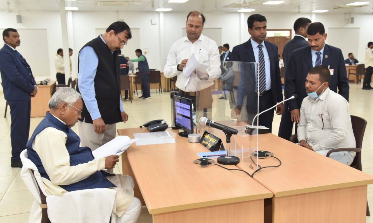पटना, 20 जनवरी 2023 :- मुख्यमंत्री श्री नीतीश कुमार आज 4 देशरत्न मार्ग स्थित मुख्यमंत्री सचिवालय परिसर में आयोजित ‘जनता के दरबार में मुख्यमंत्री कार्यक्रम में शामिल हुए। ‘जनता के दरबार में मुख्यमंत्री’ कार्यक्रम में मुख्यमंत्री ने राज्य के विभिन्न जिलों से पहुंचे 51 लोगों की समस्याओं को सुना और संबंधित विभागों के अधिकारियों को समाधान के लिए समुचित कार्रवाई के निर्देश दिए।