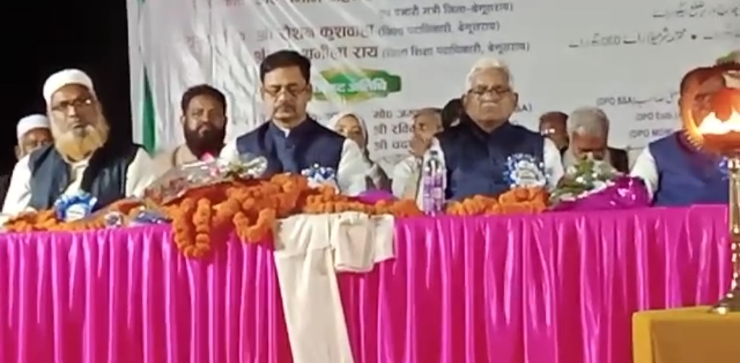 बेगूसराय में आज जिला अल्पसंख्यक प्राथमिक शिक्षक संघ के द्वारा जिला सम्मेलन में बोले मंत्री! सम्मेलन में भाग लेने पहुंचे कानून मंत्री सह बेगूसराय प्रभारी मंत्री शमीम अहमद । इस दौरान भारी संख्या में शिक्षकों ने भाग लिया साथी साथ इस सम्मेलन में तनवीर हसन ने भी हिस्सा लिया।इस दौरान कानून मंत्री ने कहा कि अल्पसंख्यक प्राथमिक शिक्षक संघ के द्वारा जिला सम्मेलन का आयोजन किया गया। इस सम्मेलन का मेन उद्देश्य है कि उर्दू को आगे ले जाना व पहले से और उर्दू को बेहतर बनाना । उन्होंने कहा कि चाहे कोई भी भाषा हो उसे धर्म से नहीं जोड़ना चाहिए। उर्दू को सुनकर फायदा उठाना चाहिए।