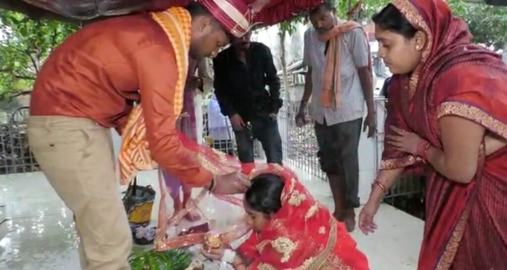 दरअसल पूरा मामला वैशाली जिले के बिदूपुर थाना परिसर के मंदिर में प्रेमी जोड़े कि शादी दोनों परिवार के सहमति से बिदुपुर थाने के पुलिस अधिकारी द्वारा कराया गया है। दोनो की शादी हिंदू रीति-रिवाजों के साथ आचार्यों के द्वारा सोमवार की शाम में कराया गया है। 2 साल पहले मां बाप इसी लड़का से शादी तय किया था जिसके बाद लड़की वाले के घर वाले 3 साल बाद शादी करने की बात हुई थी इसी बीच में दोनों लड़का लड़की आपस में फोन पर बात करने लगे लेकिन शादी लेट होने के कारण दोनो प्रेमी जोड़े ही लिविंग रिलेशनशिप आ गए थे लड़के ने लड़की पर शादी की दबिश बनाने लगा था। लड़के ने 10 मार्च को लड़की को कोलकाता से बुलवा कर जबरन हरिहर नाथ मन्दिर में शादी कर लिया था।