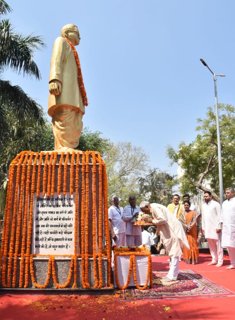 पटना, 23 मार्च 2023 :- समाजवादी आन्दोलन के प्रखर नेता डॉ० राममनोहर लोहिया जी को उनकी जयंती के अवसर पर लोहिया उद्यान, लोहिया नगर, कंकड़बाग में आयोजित राजकीय समारोह में राज्यपाल श्री राजेन्द्र विश्वनाथ आर्लेकर एवं मुख्यमंत्री श्री नीतीश कुमार ने उनकी आदमकद प्रतिमा पर माल्यार्पण कर भावभीनी श्रद्धांजलि अर्पित की।