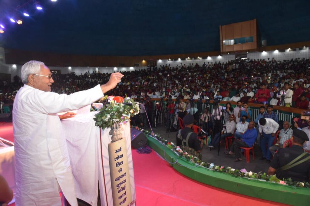 मुख्यमंत्री ने कहा कि पटना में अंतर्राष्ट्रीय स्तर का सम्राट अशोक कन्वेंशन केंद्र बनाया गया। इसके प्रांगण में सबसे पहले ज्ञान भवन का निर्माण कराया गया। जब हम सांसद थे तो देखा कि दिल्ली में विज्ञान भवन है लेकिन बिहार में ऐसा कोई भवन नहीं है। सम्राट अशोक कन्वेंशन केंद्र के प्रांगण में ही पांच हजार की क्षमता वाले बापू सभागार का निर्माण कराया गया। इतना बड़ा सभागार देश के किसी बड़े से बड़े राज्य में भी नहीं है। सम्राट अशोक कन्वेंशन केंद्र के पिछले हिस्से में सभ्यता द्वार का निर्माण भी कराया गया है जिसमें भगवान बुद्ध, भगवान महावीर और सम्राट अशोक महान से संबंधित शिलालेख है। हमने सम्राट अशोक कन्वेंशन केंद्र नामकरण किया। सेंटर की जगह हमने केंद्र इसलिए किया क्योंकि हम सब यहीं के रहने वाले हैं और यहाँ की भाषा हिंदी है। सम्राट अशोक कन्वेंशन केंद्र के प्रांगण में स्थापित सम्राट अशोक महान की मूर्ति आप सभी जाकर जरुर देखें। आप सभी का सम्राट अशोक के प्रति विश्वास है, आप सभी उनके विचारों को मानने वाले हैं।