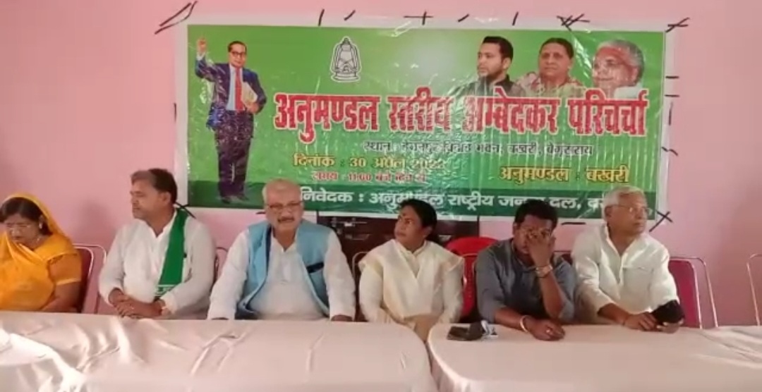 बेगूसराय जिला के बखरी अनुमंडल के विवाह भवन,हेमनपुर में आयोजित अंबेडकर परिचर्चा कार्यक्रम आयोजन किया गया जिसमे राजद कार्यकर्ताओं के बीच डॉ. भीमराव अंबेडकर के जीवन और दर्शन विषय पर परिचर्चा की गई । कार्यक्रम के मुख्यवक्ता बिहार सरकार के पूर्व मंत्री माननीय अशोक सिंह,पूर्व सांसद-सह-चेरियाबरियारपुर के विधायक राजवंशी महतों,साहेबपुर कमाल के विधायक प्रो.सतानंद संबुद्ध,राजद के विधायक रामबृक्ष सदा,राजद की प्रदेश प्रवक्ता डॉ.उर्मिला ठाकुर ने भाग लिया।कार्यक्रम की अध्यक्षता राजद के जिलाध्यक्ष मोहित यादव की जबकि मंच संचालन राजद नेता हरेराम महतों ने किया। कार्यक्रम में राजद के प्रदेश महासचिव शम्भु सहनी, यूवा राजद के प्रदेश महासचिव रूपेश कुमार यादव,राजद महिला प्रकोष्ठ की प्रदेश महासचिव अनिता चौधरी,इंदिरा बागवान पंचायत के मुखिया योगेन्द्र राय ,बेगूसराय जिला राजद के प्रधानमहासचिव रामसखा महतों,सोनमा के पूर्व मुखिया शिवनारायण राम, गुलाब चौधरी,जर्नादन यादव, साहेब पासवान,बखरी प्रखंड अध्यक्ष सुरेश यादव,नावकोठी प्रखंड अध्यक्ष श्रवण यादव,राजद नेता सहित सैकड़ों की संख्या में राजद नेता प्रो. ब्रजनंदन यादव,अरुण यादव,सहदेव महतों, गंगा महतों, अवध बिहारी यादव, मो. कुदुस, राज कुमार तांती, इंद्रा परमार ,राजा सिंह परमार,बाल्मिकी यादव,पूर्व मुखिया कैलाश सदा, रंजित महतो , पंचायत अध्यक्ष शंकर महतो , रामचरण महतो, सहित सैकड़ों नेता व कार्यकर्ताओं ने भाग लिया।