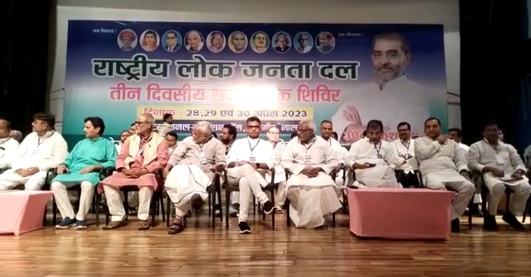 राजगीर के अंतरराष्ट्रीय कन्वेंशन हॉल में राष्ट्रीय लोक जनता दल का तीन दिवसीय राजनीतिक चिंतन शिविर का रविवार को समापन हो गया।समापन भाषण के दौरान पार्टी के राष्ट्रीय अध्यक्ष उपेंद्र कुशवाहा ने कहा की कार्यकर्ता 2024 और 2025 के चुनाव को लेकर राजगीर से संकल्प लेकर जाय ताकि पार्टी मजबूत हो। उपेंद्र कुशवाहा ने कहा पूर्व में जिस तरह से चुनाव में हमको जातिगत समर्थन नहीं मिला,जिसके कारण हमको निराश होकर पार्टी का विलय करना पड़ा लेकिन इस बार किसी भी परिस्थितियो में पार्टी का विलय नही होने देगी। उन्होंने नीतीश कुमार पर चुटकी लेते हुए कहा बिहार में सुशासन की सरकार नीतीश कुमार को कहने का हक नहीं है क्योंकि यहां महागठबंधन की सरकार में हर योजनाओं में नेताओ और उनके अधिकारियों का कमीशन बंधा हुआ है। नीतीश कुमार के लगातार पीएम बनने की बात के ऊपर चुटकी लेते हुए कहा की नीतीश कुमार ने पीएम बनने के अवसर को गवां दिया।कल तक नीतीश कुमार को पलटुराम, सिखंडी,बेशर्म कहने वाली राजद पार्टी आज नीतीश कुमार को पीएम बनाने को लेकर देश में दौरा करा रहे है। आनंद मोहन की रिहाई पर कहा की उस समाज के लोग गलतफहमी में है की परिवार के सदस्य को जेल से बाहर किया। नीतीश कुमार ने राजनीतिक लाभ लेने के लिए आनंद मोहन जैसे बाहुबली नेता को जेल से बाहर किया गया। उन्होंने चुटकी लेते हुए कहा की लालू जी तो उड़नकटोला पर चढ़ गए लेकिन नीतीश जी को भैंस पर बैठा दिए वो भैंस भी पानी में डूब गया।