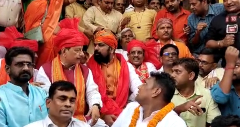 नालंदा जिला प्रशासन के ढुलमुल रवैया के विरोध में नेता प्रतिपक्ष विजय सिन्हा बीजेपी प्रदेश अध्यक्ष सम्राट चौधरी ने बाबा मणिराम के अखाड़ा परिसर के सीढ़ियों पर बैठकर सांकेतिक धरना दिया। इसके पूर्व बीजेपी नेताओं ने बाबा मणिराम की समाधि पर जाकर पूजा अर्चना की। सांकेतिक धरना को संबोधित करते हुए बीजेपी नेता सम्राट चौधरी ने कहा कि इसके पूर्व बिहार श्री को बिहारशरीफ कर दिया। इस बात की भी चिंता हम लोग को करनी है। बिहार में भारतीय जनता पार्टी की सरकार अगर बनती है इस प्रदेश में किसी भी मुगल राजा और किसी भी अंग्रेज का पूजा नहीं होगा। हम सिर्फ और सिर्फ भारत के वीर सपूतों की पूजा करेंगे। आज इस राम अखाड़ा के स्थल पर यह संकल्प लेते हैं आने वाले 2025 के चुनाव में बिहार में भाजपा की सरकार होगी। वही नेता प्रतिपक्ष विजय सिन्हा ने भी प्रशासन के द्वारा चुपके से रामजानकी की मूर्ति को बाबा मणिराम अखाड़ा परिसर में स्थापित करने के सवाल पर प्रहार करते हुए कहा कि इन जयचंदो की जमात संत सनातन के संतानों को रोक नहीं पाएगी। रामजानकी की प्रतिमा को रोकने वाले रावण के विचारधारा रखने वाले लोग की लंका में आग लगाने का काम करेगी उसके बाद रामराज स्थापित होगा।