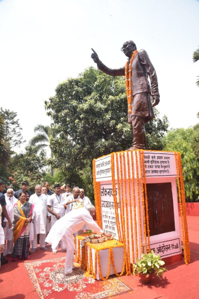 पटना, 05 जून 2023 :- आज सम्पूर्ण क्रान्ति दिवस के अवसर पर गॉधी मैदान के दक्षिण- पश्चिम छोर पर स्थित गोलम्बर में स्थापित महान क्रान्तिकारी, स्वतंत्रता सेनानी एवं सम्पूर्ण क्रांति के महानायक लोकनायक स्व० जयप्रकाश नारायण जी की प्रतिमा स्थल पर राजकीय समारोह का आयोजन किया गया। इस अवसर पर राज्यपाल श्री राजेन्द्र विश्वनाथ आर्लेकर एवं मुख्यमंत्री श्री नीतीश कुमार ने लोकनायक स्व० जयप्रकाश नारायण जी की आदमकद प्रतिमा पर माल्यार्पण कर उन्हें शत-शत नमन किया तथा उनके बताये आदर्शों को याद किया ।