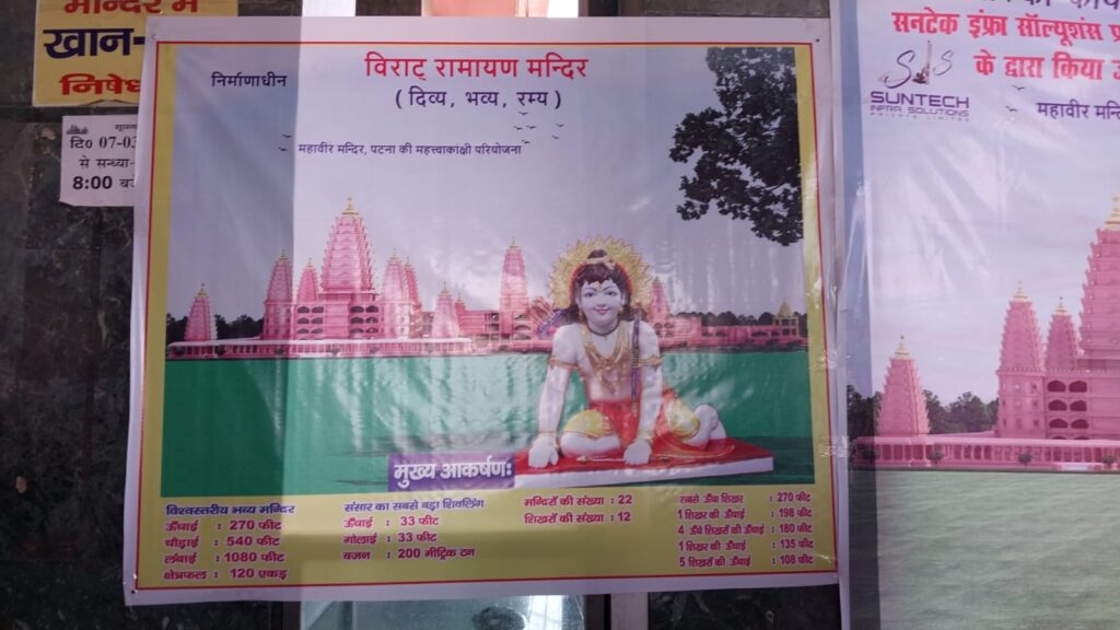 महावीर मंदिर पटना के सचिव आचार्य किशोर कुणाल ने कहा कि यह मंदिर विश्व का सबसे ऊंचा मंदिर होगा, जिसके शिखर की ऊंचाई 270 फीट होगी. वर्ष 2025 के सावन तक मंदिर में विश्व के सबसे बड़े शिवलिंग की स्थापना हो जाएगी और उसी साल आखिर तक विराट रामायण मंदिर बनकर तैयार हो जाएगी.