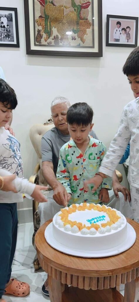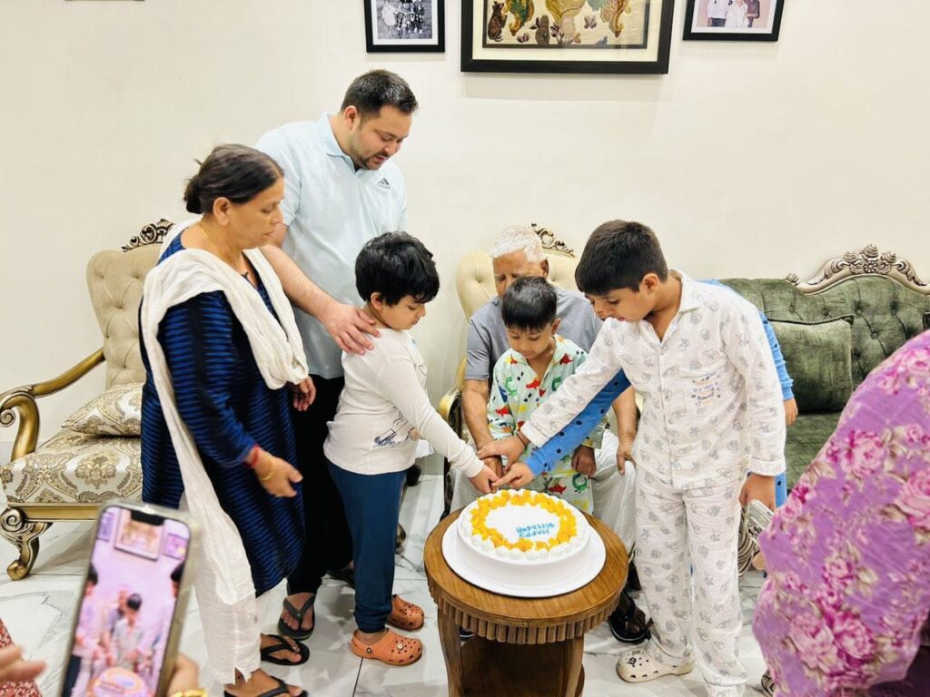 एंकर राजद सुप्रीमो लालू प्रसाद का आज यानी 11 जून को 74वा जन्मदिन है स्कूल के लालू प्रसाद यादव की एक तस्वीर सामने आई है जिसमें उनके द्वारा पूरे परिवार के साथ केक काटा गया इस दौरान इस तस्वीर में देखा जा सकता है कि लालू प्रसाद की धर्मपत्नी और पूर्व मुख्यमंत्री राबड़ी देवी भी मौजूद हैं जिन्हें लालू प्रसाद अपने हाथों से खिला रहे हैं उसके अलावा डिप्टी सीएम तेजस्वी यादव और उनकी बहने समेत परिवार के अन्य सदस्य भी इस फोटो में दिखाई पड़ रहे हैं यह तस्वीर राजद कार्यालय की ओर से सोशल मीडिया की ओर से व्हाट्सएप ग्रुप में भेजी गई है बताते चलें कि लालू प्रसाद के जन्मदिन को लेकर आज काफी चहल-पहल देखी जा सकती है पार्टी की ओर से एक भोज का भी आयोजन किया गया जिसमें पार्टी समर्थक लालू के चाहने वाले और बड़े राजनेता भी शामिल होंगे लालू प्रसाद के परिवार के लोगों में भी उनके जन्मदिन को लेकर खासा उत्साह देखने को मिल रहा है