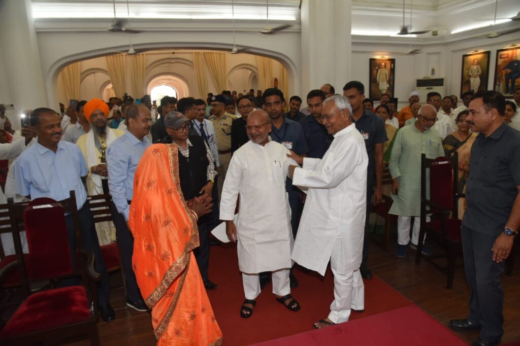 पटना, 16 जून 2023 :- मुख्यमंत्री श्री नीतीश कुमार आज राजभवन में आयोजित मंत्रिमंडल के सदस्य के शपथग्रहण समारोह में शामिल हुये । राज्यपाल श्री राजेन्द्र विश्वनाथ आर्लेकर ने राजभवन स्थित दरबार हॉल में श्री रत्नेश