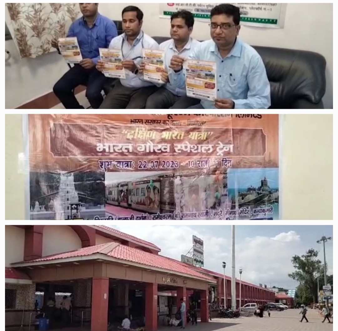 भारतीय रेलवे की शाखा इंडियन रेलवे कैटरिंग एंड टूरिज्म कारपोरेशन लिमिटेड की क्षेत्रीय कार्यालय पटना से पहली बार देखो अपना देश के तहत भारत गौरव ट्रेन की शुरुआत चम्पारण से करने जा रही है भारत ट्रेन योजना के तहत भारतीय रेलवे रेल पर्यटन को बढ़ावा देने के लिए लगभग 33 परसेंट रियायत प्रदान कर रहा है यह ट्रेन दिनांक 22/07/2023 को बेतिया से खुलेगी जो कि सुगौली रामगढ़वा रक्सौल सीतामढ़ी दरभंगा समस्तीपुर मुजफ्फरपुर हाजीपुर पटना बख्तियारपुर मोकामा क्यूल झाझा जसीडीह मधुपुर जामताड़ा चितरंजन आसनसोल आद्रा एवं हीजली स्टेशन पर तीर्थ यात्रियों को ट्रेन में सवार होने के लिए रुकेगी और दक्षिण भारत के तीर्थ स्थलों जैसे कि तिरुपति श्री बालाजी दर्शन रामेश्वरम मदुरई कन्याकुमारी त्रिवेंद्रम का दर्शन कराते हुए 18/08/2023 को वापस लौटेगी भारतीय रेल द्वारा संचालित भारत गौरव ट्रेन में पहली बार दो श्रेणी रखी गई है जिसमें स्लीपर क्लास से यात्रा होगी इसका शुल्क ₹19620 प्रति व्यक्ति रखा गया है और 03 एसी क्लास से यात्रा होगी इसका शुल्क ₹32075 प्रति व्यक्ति है इसके अलावे श्रेणी के हिसाब से वातानुकूलित और गैर वातानुकूलित होटल में यात्री विश्राम की सुविधा है साथ ही शाकाहारी भोजन सुबह दोपहर और रात का भोजन के साथ साथ सुबह प्रत्येक दिन 2 बोतल पानी भी दिया जाएगा।ट्रेन में सुरक्षा गार्ड सफाई कर्मी व डॉक्टर उपलब्ध रहेंगे उक्त बातों की जानकारी राजेश कुमार संयुक्त महाप्रबंधक आईआरसीटीसी क्षेत्रीय कार्यालय पटना ने मोतिहारी में प्रेसवार्ता कर पत्रकारों को दी है।
