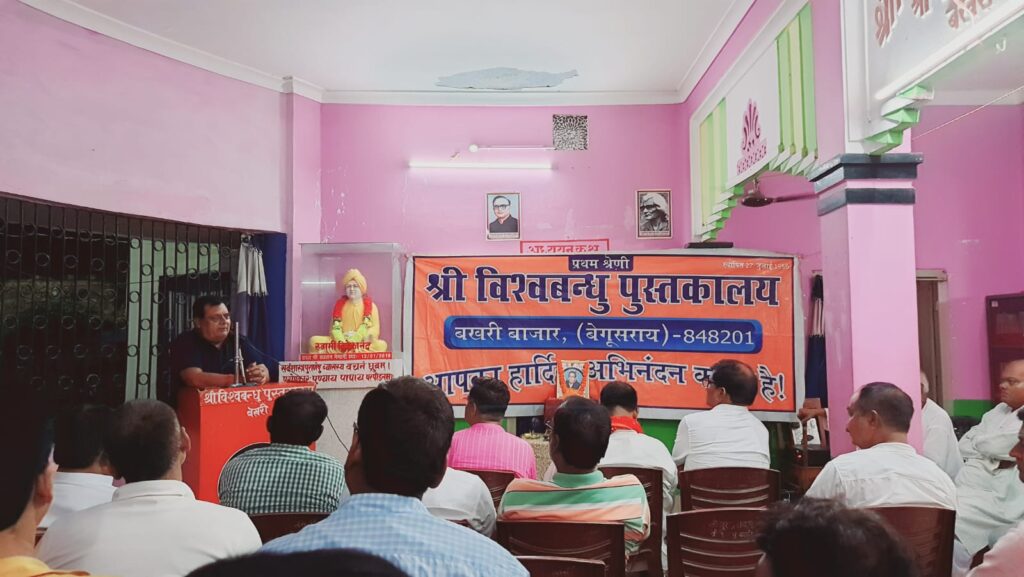 बेगूसराय में श्री विश्व बंधु पुस्तकालय में मुरारी शर्मा के निधन पर शोक सभा आयोजन