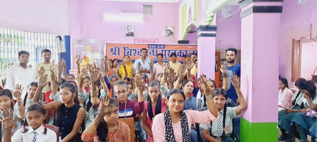 बेगुसराय श्री विश्वबंधु पुस्तकालय वार्षिकोत्सव के मौके पर मेहंदी प्रतियोगिता का अयोजन छात्राओं ने दिखाया प्रतीभा