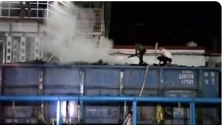 मालगाड़ी में लोड कोयला की बोगी में लगी आग कड़ी मशक्कत के बाद आग पर पाया गया काबू