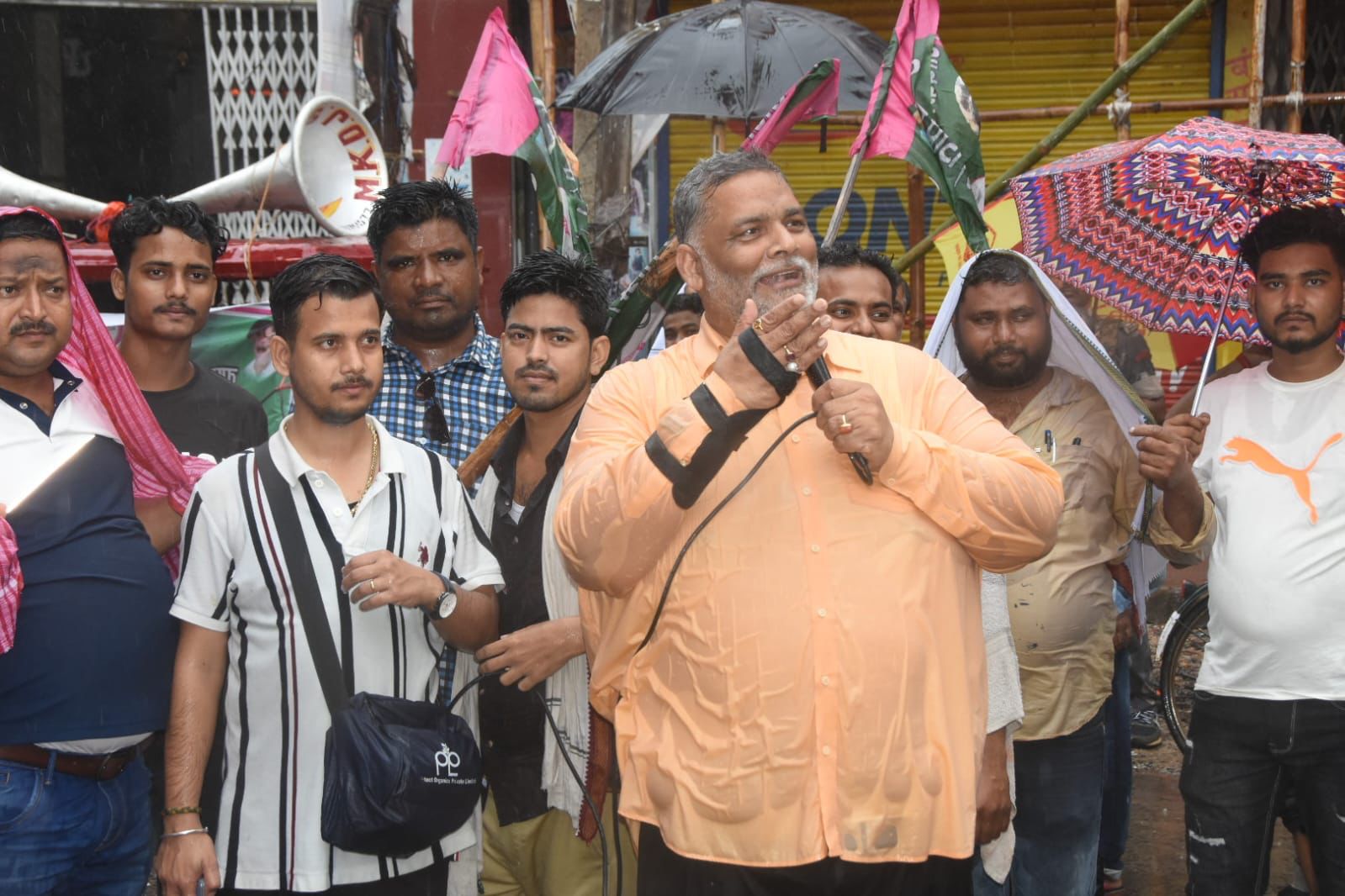 *बारसोई गोली कांड के ख़िलाफ़ कटिहार बंद को लेकर पप्पू यादव ने उतरे कटिहार के सड़कों पर । बारिश में ही भींगते-भींगते सड़कों पर दिखें जाप प्रमुख पप्पू यादव *