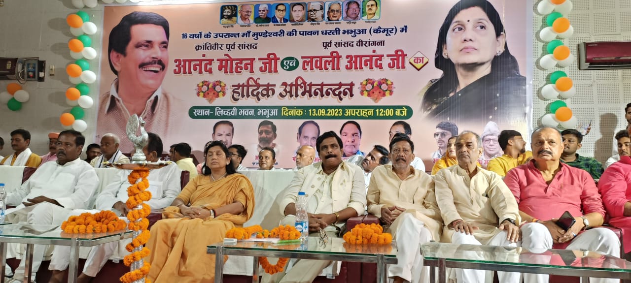 कैमूर। बुधवार को कैमूर जिले के भभुआ शहर में पूर्व सांसद आनंद मोहन का कार्यक्रम हुआ। भभुआ शहर के लिच्छवी भवन में पूर्व सांसद आनंद मोहन का कार्यक्रम भव्य रूप से आयोजित किया। इसको लेकर कार्यकर्ताओं द्वारा जोर शोर से कार्यक्रम की तैयारी किया गया था। 13 सितंबर दिन बुधवार को भभुआ के लिच्छवी भवन में फ्रेंड्स ऑफ आनंद द्वारा आयोजित किये गए कार्यक्रम में पूर्व सांसद आनंद मोहन के अलावे उनकी पत्नी लवली आनंद मौजूद रहीं। कार्यक्रम में कार्यकर्ताओं ने आनंद मोहन और उनकी पत्नी लवली आनंद का जोरदार स्वागत किया। समारोह को संबोधित करते हर पूर्व सांसद आनंद मोहन ने कहा कि देश में एक तरफ समाजवाद है तो दूसरी तरफ पूंजीवाद है।पूर्व सांसद आनंद मोहन ने कहा कि हम हम महात्मा गांधी के विचारों और मार्ग पर चलकर आगे की लड़ाई लड़ेंगे। देश में एक तरफ जहां समाजवाद है। वहीं दूसरी तरफ देश में पूंजीवाद है। पूंजीवादी विश्वविद्यालय को कब्जे में कर रहे है। आनंद मोहन ने कहा कि हम महात्मा गांधी के रास्ते पर चलते हुए समाजवाद का नारा बुलंद कर गरीब किसान मजदूर एवं वंचितों का राज स्थापित करने के लिए लोगों को एकत्रित करने का काम करेंगे। पूर्व सांसद ने कहा कि गांधी के विचारों एवं रास्तों पर चलते हुए आगे की लड़ाई लड़ेंगे।