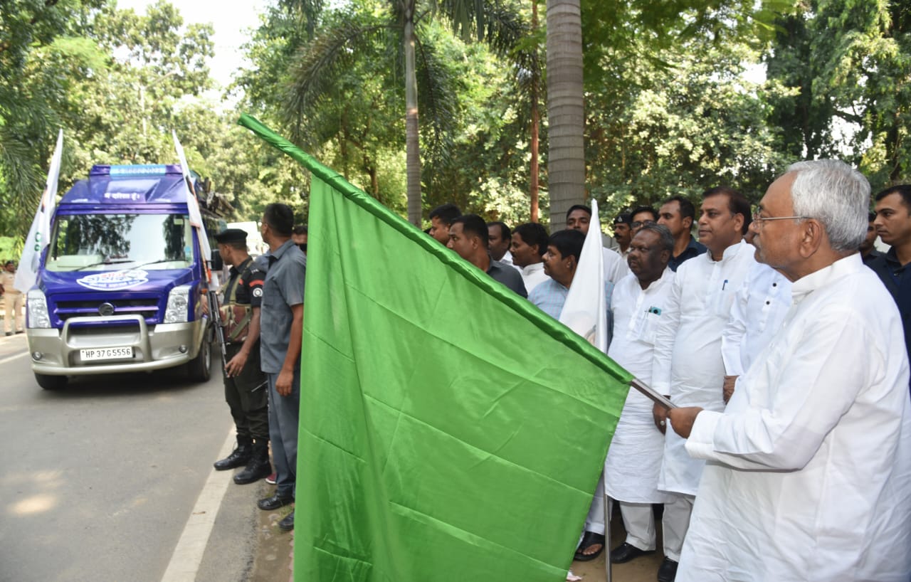 पटना, 10 अक्टूबर 2023 :- मुख्यमंत्री श्री नीतीश कुमार ने आज 01, अणे मार्ग से भीम संसद रथ को हरी झंडी दिखाकर रवाना किया ।