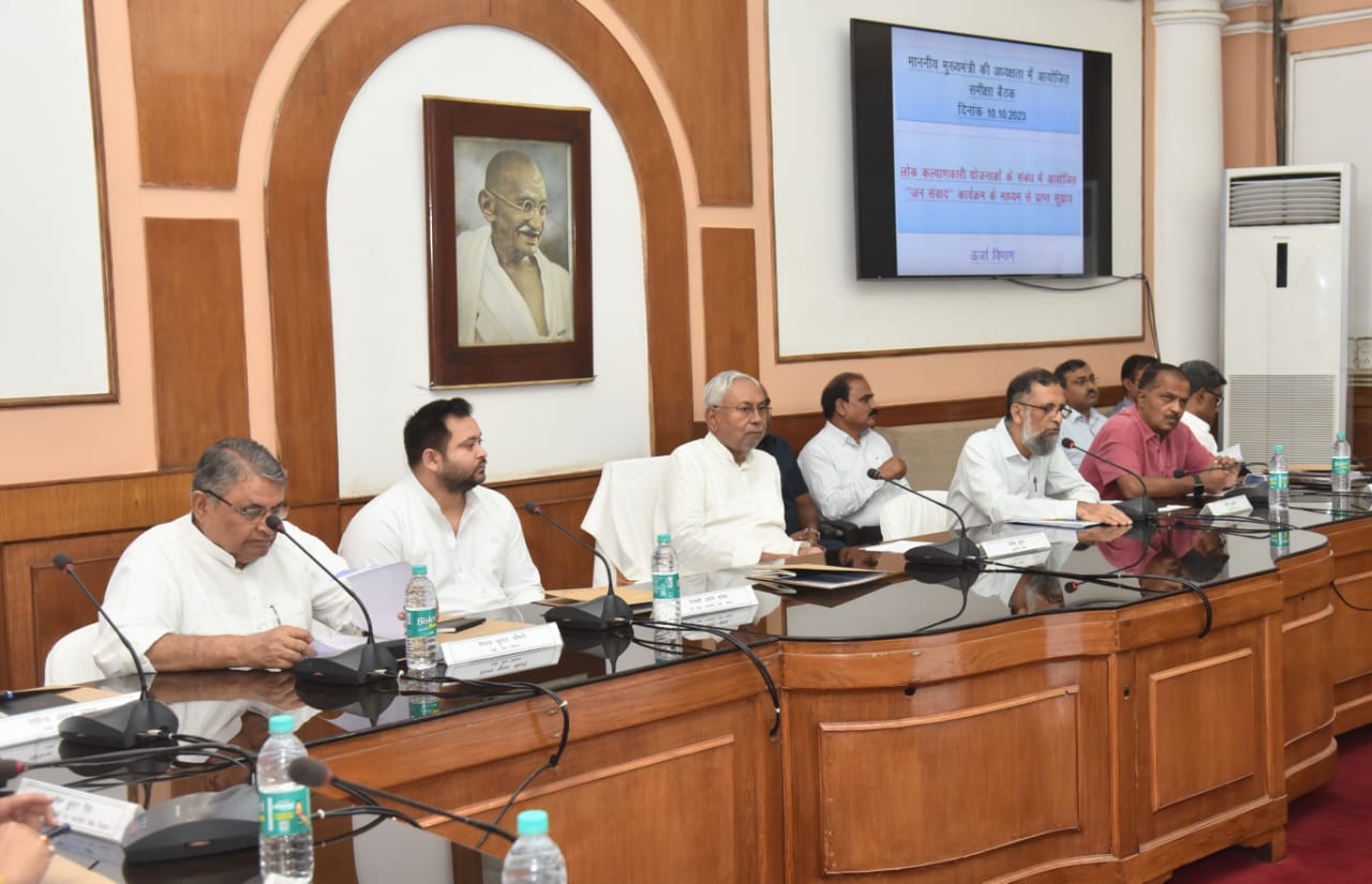 पटना, 10 अक्टूबर 2023 :- मुख्यमंत्री श्री नीतीश कुमार ने आज मुख्य सचिवालय स्थित सभा कक्ष में लोक कल्याणकारी योजनाओं के संबंध में आयोजित “जनसंवाद कार्यक्रम के माध्यम से प्राप्त सुझावों को लेकर समीक्षा बैठक की। इसके तहत ऊर्जा विभाग तथा लोक स्वास्थ्य अभियंत्रण विभाग के कार्यों की विस्तृत समीक्षा की गई। समीक्षा के दौरान मुख्यमंत्री ने अधिकारियों को आवश्यक निर्देश दिए।