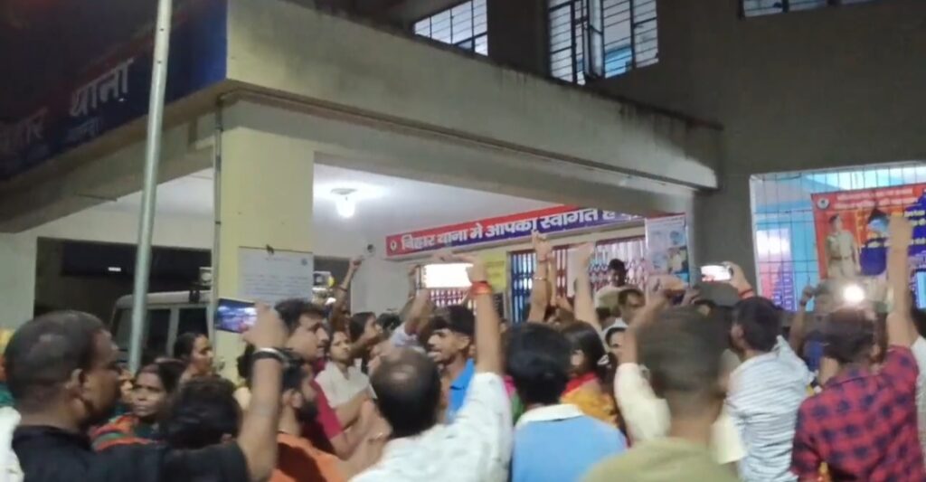 नालंदा :बिहार थाना पुलिस द्वारा शुक्रवार की शाम वार्ड संख्या 34 के वार्ड पार्षद प्रतिनिधि श्रवण यादव की गिरफ्तारी के विरोध में मोहल्लेवासियों ने थाना पहुंचकर घेराव करते हुए पुलिस प्रशासन पर एक पक्षीय कार्रवाई का आरोप लगाकर जमकर हंगामा किया। लोगों का आरोप है कि कुछ दिन पूर्व पोस्ट फाड़ने पर मारपीट और गोलीबारी की घटना घटी थी जिसका मामला थाना में दर्ज है गोलीबारी और मारपीट की घटना में दो वार्ड पार्षद भी आरोपित है पुलिस उन लोगों पर कोई कार्रवाई नहीं कर रही है। सिर्फ खानापूर्ति के नाम पर पुलिस दूसरे पक्ष के मुख्य आरोपितों को गिरफ्तार नहीं कर कर उनके एक-दो लोगों को गिरफ्तार कर पीठ थपथपा रही है। नगर थानाध्यक्ष नीरज कुमार सिंह ने बताया कि दोनों पक्ष से मामला दर्ज कराया गया था । एक पक्ष के चार आरोपियों को पूर्व में ही गिरफ्तार कर जेल भेजी गई है । दूसरे पक्ष से आज शाम श्रवण यादव को गिरफ्तार किया गया है।