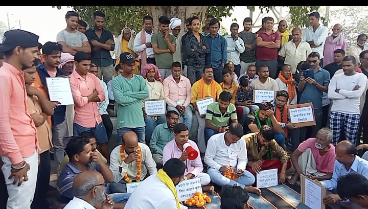 अपनी मांग को लेकर कर्मनाशा मे आमरण अनशन पर बैठे ग्रामीण