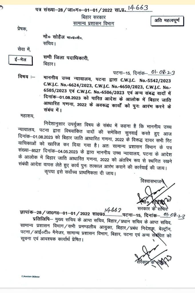 हाई कोर्ट से राहत मिलते ही राज्य सरकार ने जातीय जनगणना फिर शुरू करने का आदेश जारी किया! August 1, 2023 No Comments