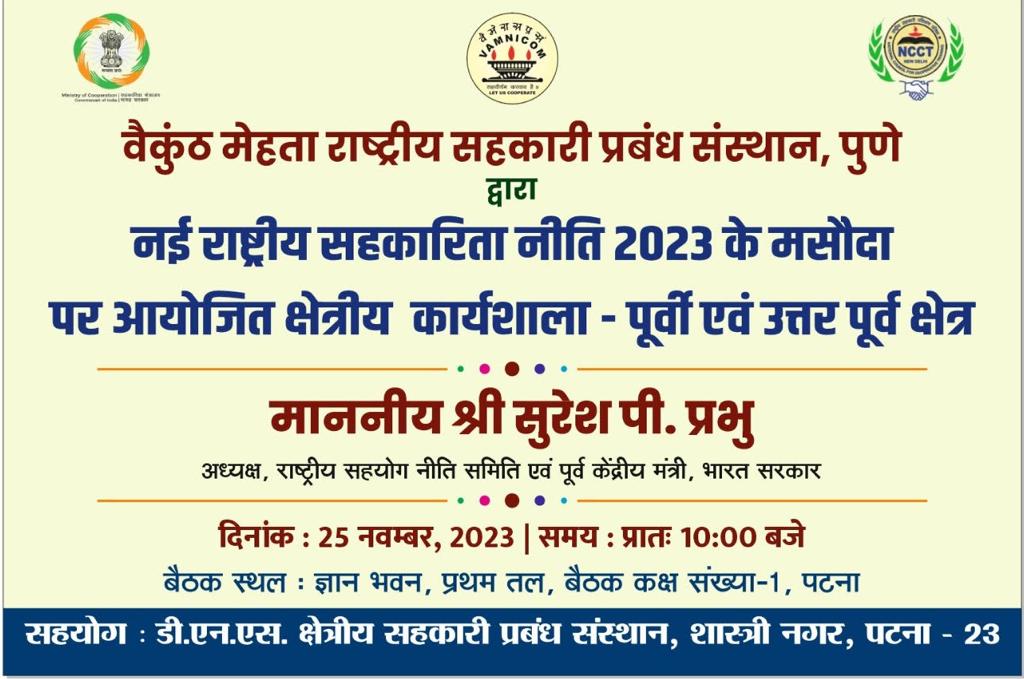 राष्ट्रीय सहकारिता नीति 2023 के ड्राफ्ट पर क्षेत्रीय कार्यशाला शनिवार को ज्ञान भवन पटना में! November 25, 2023 No Comments