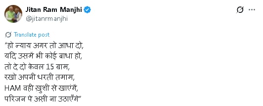 जीतन राम मांझी ने एक्स पर पोस्ट कर 15 सीटों की मांग की, NDA की बढ़ी टेंशन! October 8, 2025 No Comments