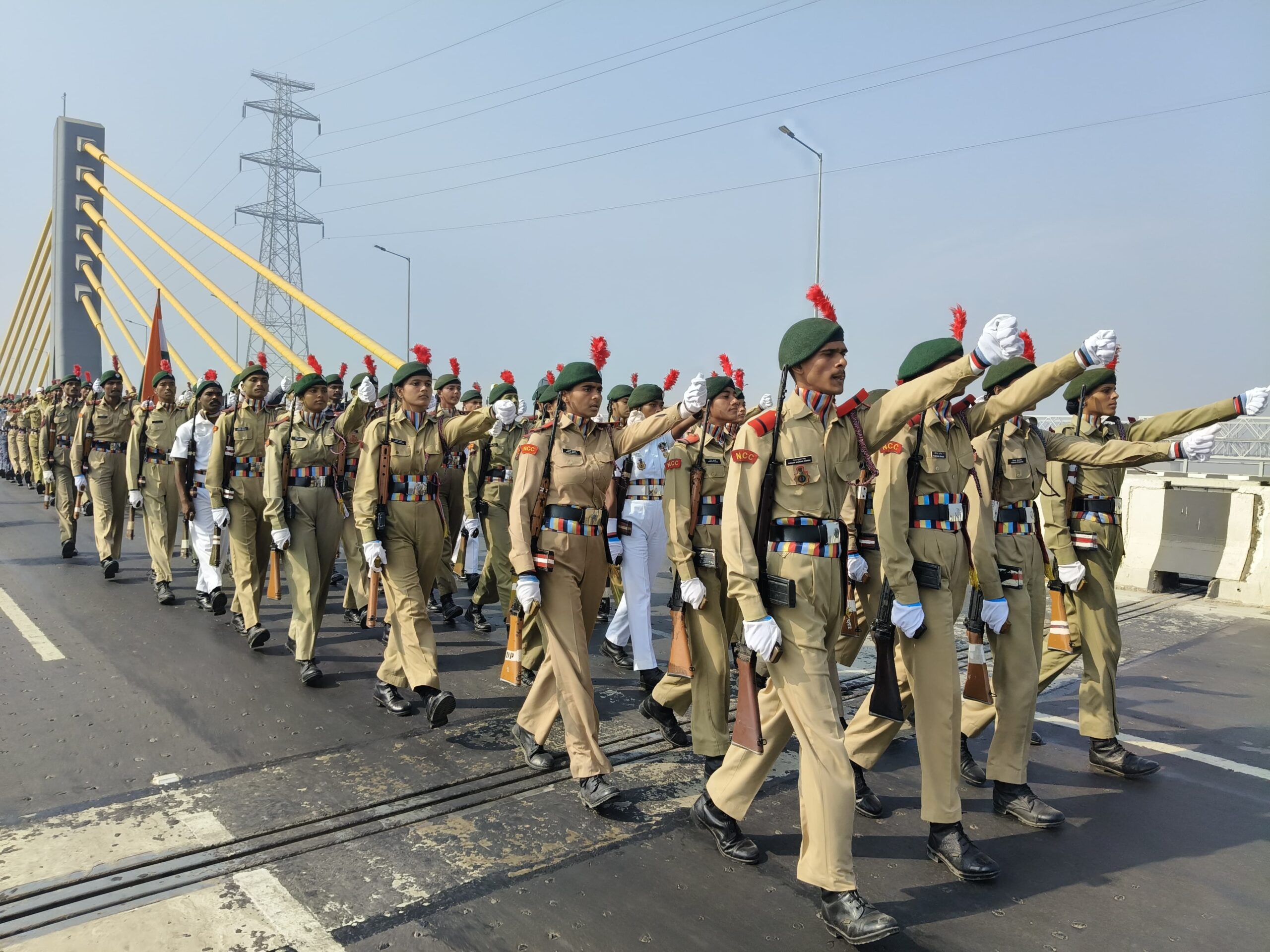 गणतंत्र दिवस परेड नई दिल्ली में भाग लेने वाले कैडेट्स ने सिक्स लेन सेतु पर किया अभ्यास! November 28, 2025 No Comments