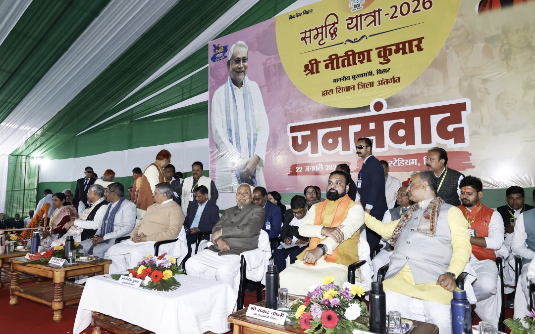 समृद्धि यात्रा के दौरान सीवान जिला में आयोजित जन संवाद कार्यक्रम में शामिल हुए मुख्यमंत्री! January 23, 2026 No Comments